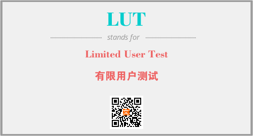 英文缩略词“LUT”经常作为“Limited User Test”的英文缩写来使用,中文表示:“有限用户测试”。本文将详细介绍英文缩写词LUT所代表英文单词,其对应的中文拼音、详细解释以及在英语中的流行度。此外,还有关于缩略词LUT的分类、应用领域及相关应用示例等。