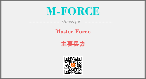 上述内容是“Master Force”作为“M-FORCE”的缩写,解释为“主要兵力”时的信息,以及英文缩略词M-FORCE所代表的英文单词,其对应的中文拼音、详细解释以及在英文中的流行度和相关分类、应用领域及应用示例等。