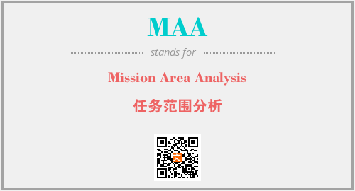 上述内容是“Mission Area Analysis”作为“MAA”的缩写,解释为“任务范围分析”时的信息,以及英文缩略词MAA所代表的英文单词,其对应的中文拼音、详细解释以及在英文中的流行度和相关分类、应用领域及应用示例等。