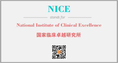 上述内容是“National Institute of Clinical Excellence”作为“NICE”的缩写,解释为“国家临床卓越研究所”时的信息,以及英文缩略词NICE所代表的英文单词,其对应的中文拼音、详细解释以及在英文中的流行度和相关分类、应用领域及应用示例等。