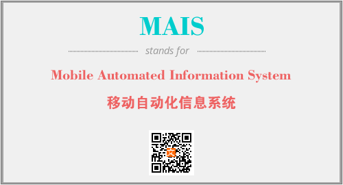 上述内容是“Mobile Automated Information System”作为“MAIS”的缩写,解释为“移动自动化信息系统”时的信息,以及英文缩略词MAIS所代表的英文单词,其对应的中文拼音、详细解释以及在英文中的流行度和相关分类、应用领域及应用示例等。