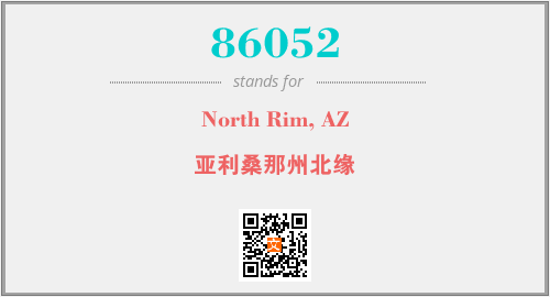 上述内容是“North Rim, AZ”作为“86052”的缩写,解释为“亚利桑那州北缘”时的信息,以及英文缩略词86052所代表的英文单词,其对应的中文拼音、详细解释以及在英文中的流行度和相关分类、应用领域及应用示例等。