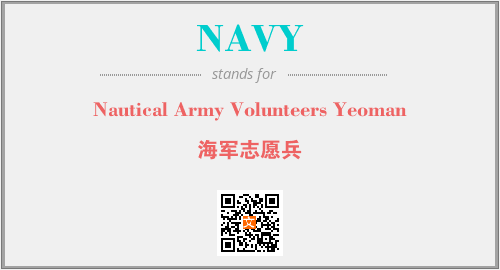 英文缩略词“NAVY”经常作为“Nautical Army Volunteers Yeoman”的英文缩写来使用,中文表示:“海军志愿兵”。本文将详细介绍英文缩写词NAVY所代表英文单词,其对应的中文拼音、详细解释以及在英语中的流行度。此外,还有关于缩略词NAVY的分类、应用领域及相关应用示例等。