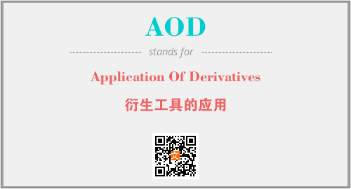 上述内容是“Application Of Derivatives”作为“AOD”的缩写,解释为“衍生工具的应用”时的信息,以及英文缩略词AOD所代表的英文单词,其对应的中文拼音、详细解释以及在英文中的流行度和相关分类、应用领域及应用示例等。
