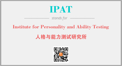 英文缩略词“IPAT”经常作为“Institute for Personality and Ability Testing”的英文缩写来使用,中文表示:“人格与能力测试研究所”。本文将详细介绍英文缩写词IPAT所代表英文单词,其对应的中文拼音、详细解释以及在英语中的流行度。此外,还有关于缩略词IPAT的分类、应用领域及相关应用示例等。