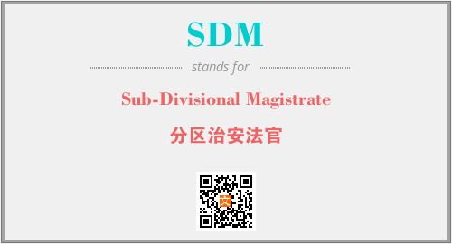 英文缩略词“SDM”经常作为“Sub-Divisional Magistrate”的英文缩写来使用,中文表示:“分区治安法官”。本文将详细介绍英文缩写词SDM所代表英文单词,其对应的中文拼音、详细解释以及在英语中的流行度。此外,还有关于缩略词SDM的分类、应用领域及相关应用示例等。