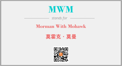 英文缩略词“MWM”经常作为“Morman With Mohawk”的英文缩写来使用,中文表示:“莫霍克·莫曼”。本文将详细介绍英文缩写词MWM所代表英文单词,其对应的中文拼音、详细解释以及在英语中的流行度。此外,还有关于缩略词MWM的分类、应用领域及相关应用示例等。