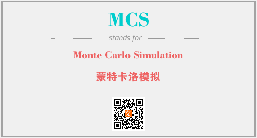 上述内容是“Monte Carlo Simulation”作为“MCS”的缩写,解释为“蒙特卡洛模拟”时的信息,以及英文缩略词MCS所代表的英文单词,其对应的中文拼音、详细解释以及在英文中的流行度和相关分类、应用领域及应用示例等。