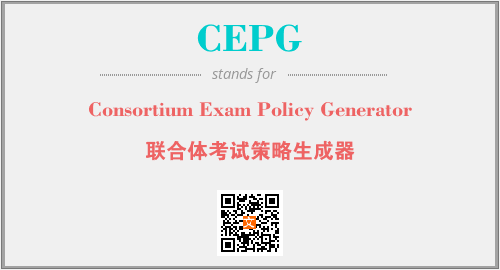 上述内容是“Consortium Exam Policy Generator”作为“CEPG”的缩写,解释为“联合体考试策略生成器”时的信息,以及英文缩略词CEPG所代表的英文单词,其对应的中文拼音、详细解释以及在英文中的流行度和相关分类、应用领域及应用示例等。