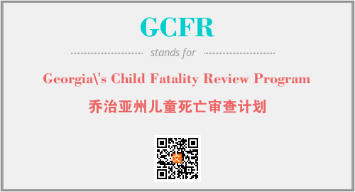 以上为Georgia\'s Child Fatality Review Program英文缩略词GCFR的中文解释,以及该英文缩写在英语的流行度、分类和应用领域方面的信息。
