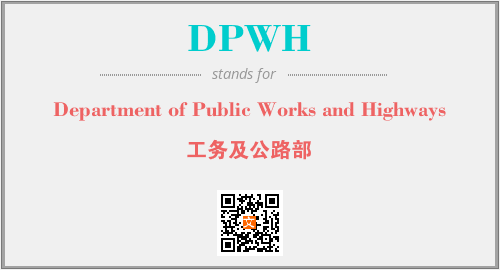 英文缩略词“DPWH”经常作为“Department of Public Works and Highways”的英文缩写来使用,中文表示:“工务及公路部”。本文将详细介绍英文缩写词DPWH所代表英文单词,其对应的中文拼音、详细解释以及在英语中的流行度。此外,还有关于缩略词DPWH的分类、应用领域及相关应用示例等。