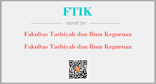 英文缩略词“FTIK”经常作为“Fakultas Tarbiyah dan Ilmu Keguruan”的英文缩写来使用,中文表示:“Fakultas Tarbiyah dan Ilmu Keguruan”。本文将详细介绍英文缩写词FTIK所代表英文单词,其对应的中文拼音、详细解释以及在英语中的流行度。此外,还有关于缩略词FTIK的分类、应用领域及相关应用示例等。