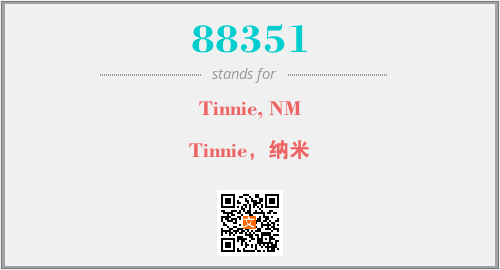 上述内容是“Tinnie, NM”作为“88351”的缩写,解释为“Tinnie,纳米”时的信息,以及英文缩略词88351所代表的英文单词,其对应的中文拼音、详细解释以及在英文中的流行度和相关分类、应用领域及应用示例等。