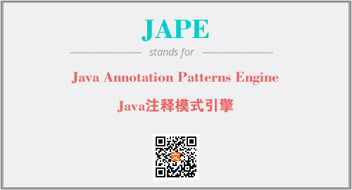 英文缩略词“JAPE”经常作为“Java Annotation Patterns Engine”的英文缩写来使用,中文表示:“Java注释模式引擎”。本文将详细介绍英文缩写词JAPE所代表英文单词,其对应的中文拼音、详细解释以及在英语中的流行度。此外,还有关于缩略词JAPE的分类、应用领域及相关应用示例等。