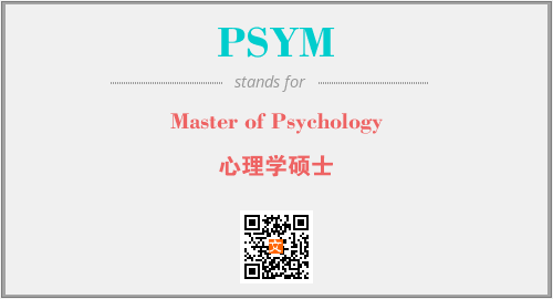 上述内容是“Master of Psychology”作为“PSYM”的缩写,解释为“心理学硕士”时的信息,以及英文缩略词PSYM所代表的英文单词,其对应的中文拼音、详细解释以及在英文中的流行度和相关分类、应用领域及应用示例等。