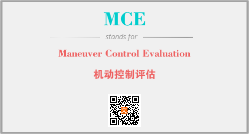 上述内容是“Maneuver Control Evaluation”作为“MCE”的缩写,解释为“机动控制评估”时的信息,以及英文缩略词MCE所代表的英文单词,其对应的中文拼音、详细解释以及在英文中的流行度和相关分类、应用领域及应用示例等。