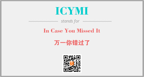 以上为In Case You Missed It英文缩略词ICYMI的中文解释,以及该英文缩写在英语的流行度、分类和应用领域方面的信息。