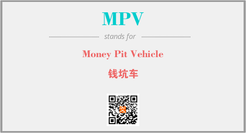 英文缩略词“MPV”经常作为“Money Pit Vehicle”的英文缩写来使用,中文表示:“钱坑车”。本文将详细介绍英文缩写词MPV所代表英文单词,其对应的中文拼音、详细解释以及在英语中的流行度。此外,还有关于缩略词MPV的分类、应用领域及相关应用示例等。