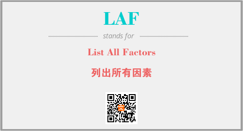 上述内容是“List All Factors”作为“LAF”的缩写,解释为“列出所有因素”时的信息,以及英文缩略词LAF所代表的英文单词,其对应的中文拼音、详细解释以及在英文中的流行度和相关分类、应用领域及应用示例等。