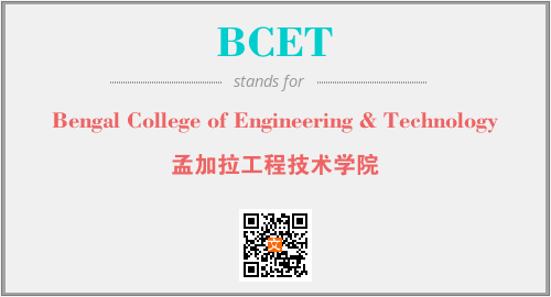 上述内容是“Bengal College of Engineering & Technology”作为“BCET”的缩写,解释为“孟加拉工程技术学院”时的信息,以及英文缩略词BCET所代表的英文单词,其对应的中文拼音、详细解释以及在英文中的流行度和相关分类、应用领域及应用示例等。