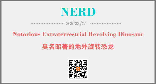 上述内容是“Notorious Extraterrestrial Revolving Dinosaur”作为“NERD”的缩写,解释为“臭名昭著的地外旋转恐龙”时的信息,以及英文缩略词NERD所代表的英文单词,其对应的中文拼音、详细解释以及在英文中的流行度和相关分类、应用领域及应用示例等。