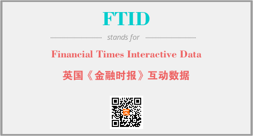 上述内容是“Financial Times Interactive Data”作为“FTID”的缩写,解释为“英国《金融时报》互动数据”时的信息,以及英文缩略词FTID所代表的英文单词,其对应的中文拼音、详细解释以及在英文中的流行度和相关分类、应用领域及应用示例等。
