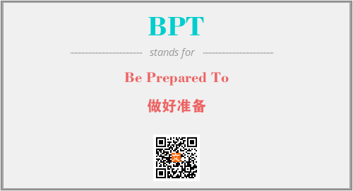 以上为Be Prepared To英文缩略词BPT的中文解释,以及该英文缩写在英语的流行度、分类和应用领域方面的信息。