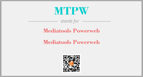上述内容是“Mediatools Powerweb”作为“MTPW”的缩写,解释为“Mediatools Powerweb”时的信息,以及英文缩略词MTPW所代表的英文单词,其对应的中文拼音、详细解释以及在英文中的流行度和相关分类、应用领域及应用示例等。