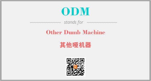 英文缩略词“ODM”经常作为“Other Dumb Machine”的英文缩写来使用,中文表示:“其他哑机器”。本文将详细介绍英文缩写词ODM所代表英文单词,其对应的中文拼音、详细解释以及在英语中的流行度。此外,还有关于缩略词ODM的分类、应用领域及相关应用示例等。