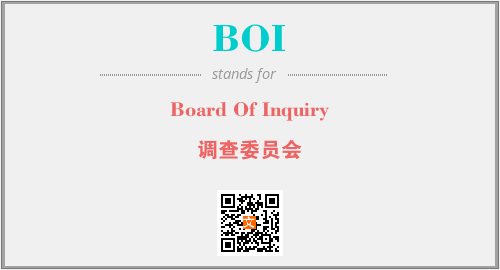 上述内容是“Board Of Inquiry”作为“BOI”的缩写,解释为“调查委员会”时的信息,以及英文缩略词BOI所代表的英文单词,其对应的中文拼音、详细解释以及在英文中的流行度和相关分类、应用领域及应用示例等。