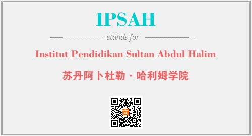 上述内容是“Institut Pendidikan Sultan Abdul Halim”作为“IPSAH”的缩写,解释为“苏丹阿卜杜勒·哈利姆学院”时的信息,以及英文缩略词IPSAH所代表的英文单词,其对应的中文拼音、详细解释以及在英文中的流行度和相关分类、应用领域及应用示例等。
