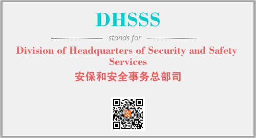 上述内容是“Division of Headquarters of Security and Safety Services”作为“DHSSS”的缩写,解释为“安保和安全事务总部司”时的信息,以及英文缩略词DHSSS所代表的英文单词,其对应的中文拼音、详细解释以及在英文中的流行度和相关分类、应用领域及应用示例等。