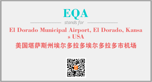 上述内容是“El Dorado Municipal Airport, El Dorado, Kansas USA”作为“EQA”的缩写,解释为“美国堪萨斯州埃尔多拉多埃尔多拉多市机场”时的信息,以及英文缩略词EQA所代表的英文单词,其对应的中文拼音、详细解释以及在英文中的流行度和相关分类、应用领域及应用示例等。