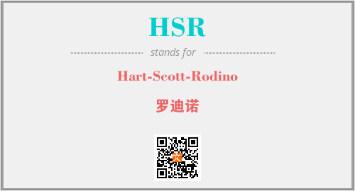 上述内容是“Hart-Scott-Rodino”作为“HSR”的缩写,解释为“罗迪诺”时的信息,以及英文缩略词HSR所代表的英文单词,其对应的中文拼音、详细解释以及在英文中的流行度和相关分类、应用领域及应用示例等。