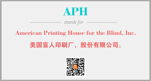 上述内容是“American Printing House for the Blind, Inc.”作为“APH”的缩写,解释为“美国盲人印刷厂,股份有限公司。”时的信息,以及英文缩略词APH所代表的英文单词,其对应的中文拼音、详细解释以及在英文中的流行度和相关分类、应用领域及应用示例等。