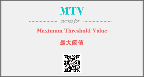 以上为Maximum Threshold Value英文缩略词MTV的中文解释,以及该英文缩写在英语的流行度、分类和应用领域方面的信息。