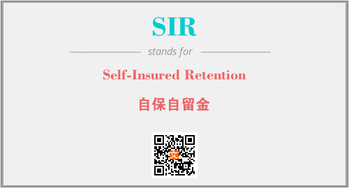 上述内容是“Self-Insured Retention”作为“SIR”的缩写,解释为“自保自留金”时的信息,以及英文缩略词SIR所代表的英文单词,其对应的中文拼音、详细解释以及在英文中的流行度和相关分类、应用领域及应用示例等。
