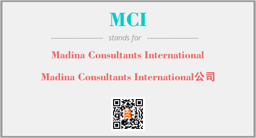 上述内容是“Madina Consultants International”作为“MCI”的缩写,解释为“Madina Consultants International公司”时的信息,以及英文缩略词MCI所代表的英文单词,其对应的中文拼音、详细解释以及在英文中的流行度和相关分类、应用领域及应用示例等。