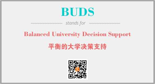 上述内容是“Balanced University Decision Support”作为“BUDS”的缩写,解释为“平衡的大学决策支持”时的信息,以及英文缩略词BUDS所代表的英文单词,其对应的中文拼音、详细解释以及在英文中的流行度和相关分类、应用领域及应用示例等。