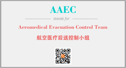 英文缩略词“AAEC”经常作为“Aeromedical Evacuation Control Team”的英文缩写来使用,中文表示:“航空医疗后送控制小组”。本文将详细介绍英文缩写词AAEC所代表英文单词,其对应的中文拼音、详细解释以及在英语中的流行度。此外,还有关于缩略词AAEC的分类、应用领域及相关应用示例等。