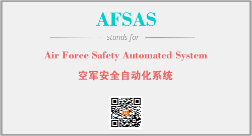上述内容是“Air Force Safety Automated System”作为“AFSAS”的缩写,解释为“空军安全自动化系统”时的信息,以及英文缩略词AFSAS所代表的英文单词,其对应的中文拼音、详细解释以及在英文中的流行度和相关分类、应用领域及应用示例等。