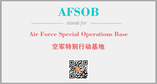 英文缩略词“AFSOB”经常作为“Air Force Special Operations Base”的英文缩写来使用,中文表示:“空军特别行动基地”。本文将详细介绍英文缩写词AFSOB所代表英文单词,其对应的中文拼音、详细解释以及在英语中的流行度。此外,还有关于缩略词AFSOB的分类、应用领域及相关应用示例等。