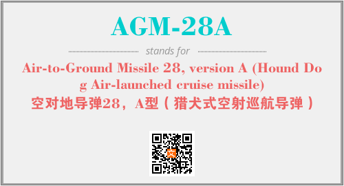 以上为Air-to-Ground Missile 28, version A (Hound Dog Air-launched cruise missile)英文缩略词AGM-28A的中文解释,以及该英文缩写在英语的流行度、分类和应用领域方面的信息。