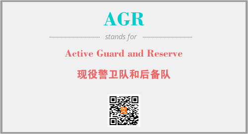 以上为Active Guard and Reserve英文缩略词AGR的中文解释,以及该英文缩写在英语的流行度、分类和应用领域方面的信息。