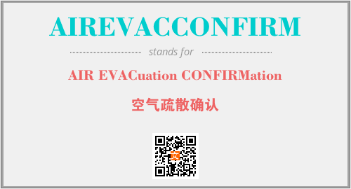 英文缩略词“AIREVACCONFIRM”经常作为“AIR EVACuation CONFIRMation”的英文缩写来使用,中文表示:“空气疏散确认”。本文将详细介绍英文缩写词AIREVACCONFIRM所代表英文单词,其对应的中文拼音、详细解释以及在英语中的流行度。此外,还有关于缩略词AIREVACCONFIRM的分类、应用领域及相关应用示例等。