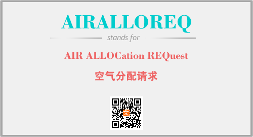 上述内容是“AIR ALLOCation REQuest”作为“AIRALLOREQ”的缩写,解释为“空气分配请求”时的信息,以及英文缩略词AIRALLOREQ所代表的英文单词,其对应的中文拼音、详细解释以及在英文中的流行度和相关分类、应用领域及应用示例等。