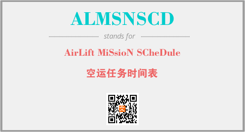 英文缩略词“ALMSNSCD”经常作为“AirLift MiSsioN SCheDule”的英文缩写来使用,中文表示:“空运任务时间表”。本文将详细介绍英文缩写词ALMSNSCD所代表英文单词,其对应的中文拼音、详细解释以及在英语中的流行度。此外,还有关于缩略词ALMSNSCD的分类、应用领域及相关应用示例等。