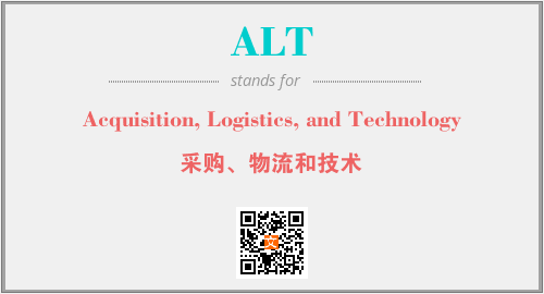 英文缩略词“ALT”经常作为“Acquisition, Logistics, and Technology”的英文缩写来使用,中文表示:“采购、物流和技术”。本文将详细介绍英文缩写词ALT所代表英文单词,其对应的中文拼音、详细解释以及在英语中的流行度。此外,还有关于缩略词ALT的分类、应用领域及相关应用示例等。