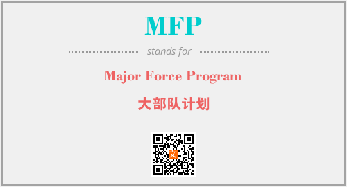 上述内容是“Major Force Program”作为“MFP”的缩写,解释为“大部队计划”时的信息,以及英文缩略词MFP所代表的英文单词,其对应的中文拼音、详细解释以及在英文中的流行度和相关分类、应用领域及应用示例等。