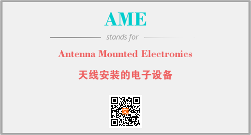 上述内容是“Antenna Mounted Electronics”作为“AME”的缩写,解释为“天线安装的电子设备”时的信息,以及英文缩略词AME所代表的英文单词,其对应的中文拼音、详细解释以及在英文中的流行度和相关分类、应用领域及应用示例等。